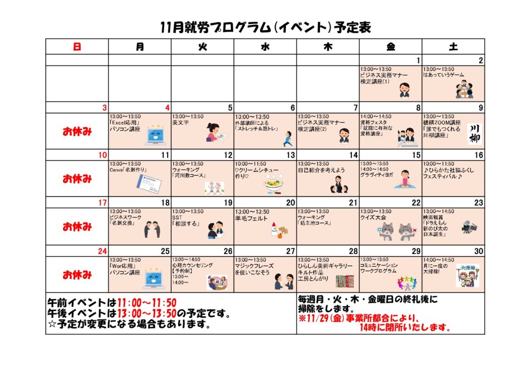★11月の就労プログラムが完成★