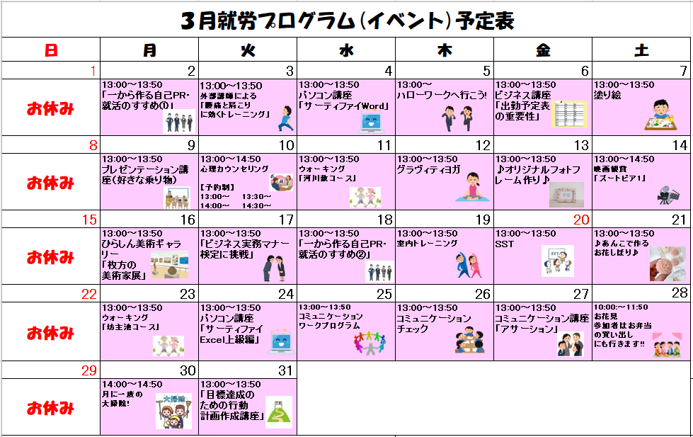 🌸3月の就労プログラム🌸