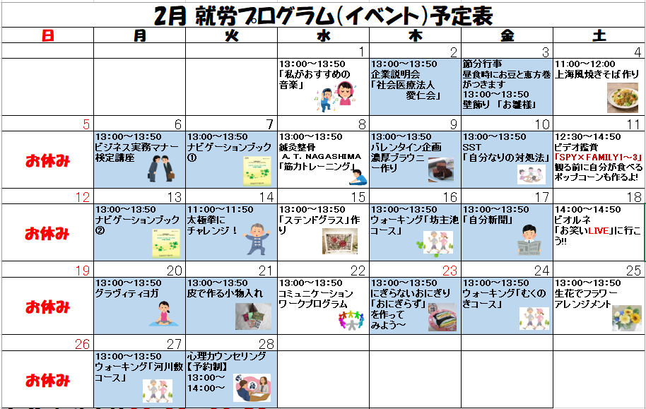 2月のプログラム表が完成しております!