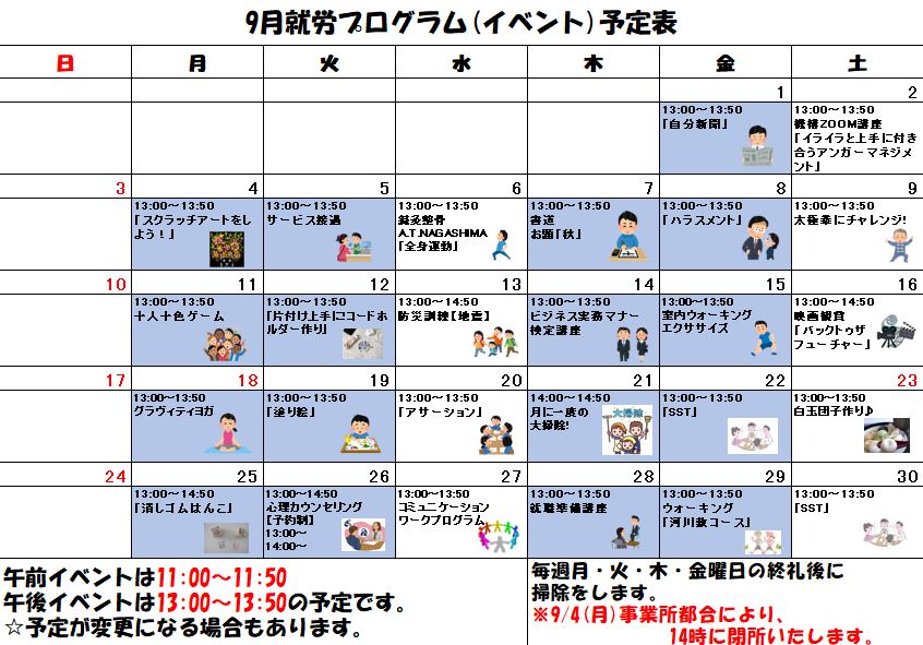 2023年9月の就労プログラム予定表を