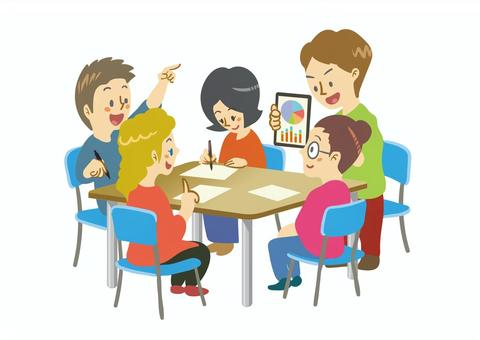 みんなで集まって話し合い、意見を出し合う。