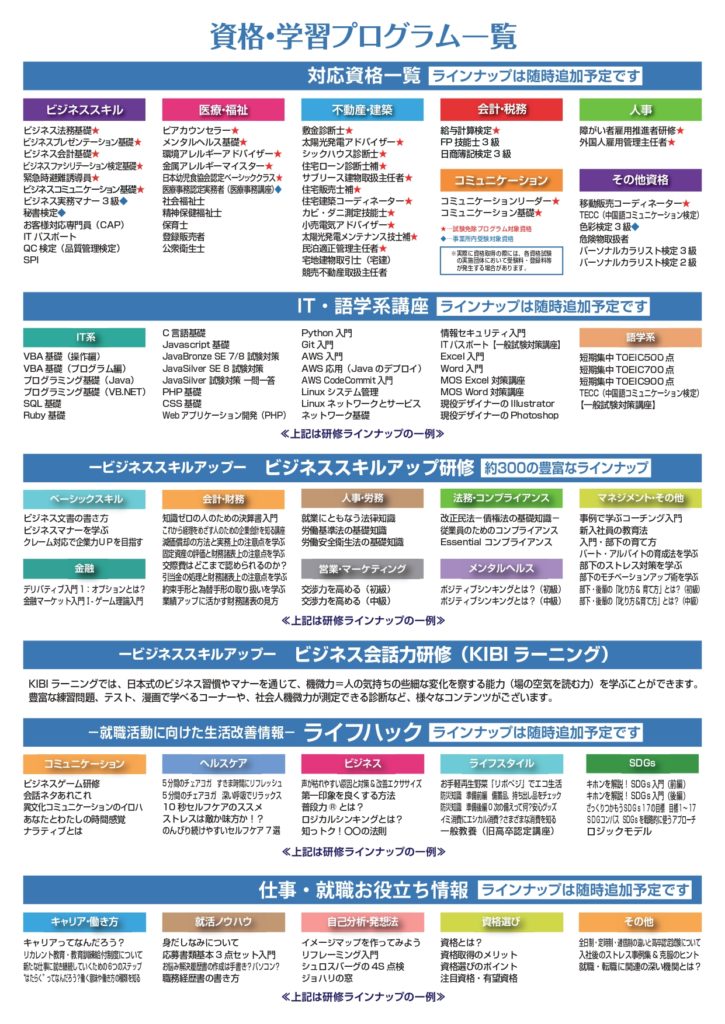 取得・学習できる資格の一覧です!